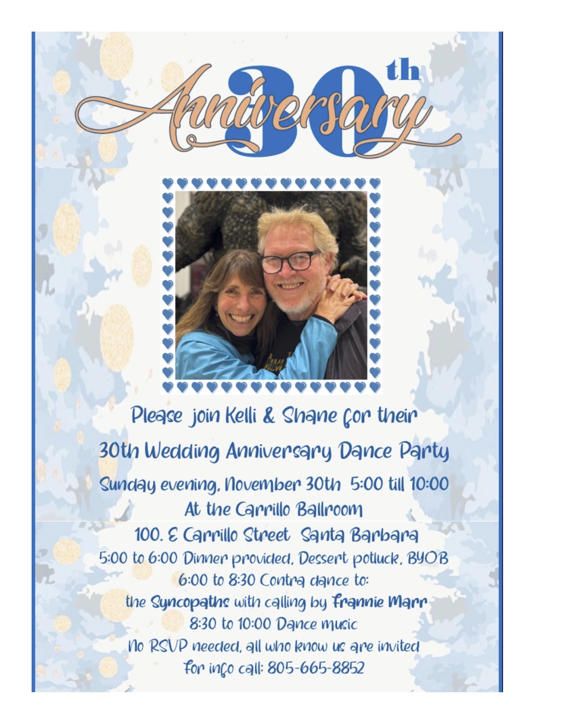 an English Country dance, usually on 1st, 3rd, and 5th Sunday afternoons, at the spacious social hall of the First Presbyterian Church.